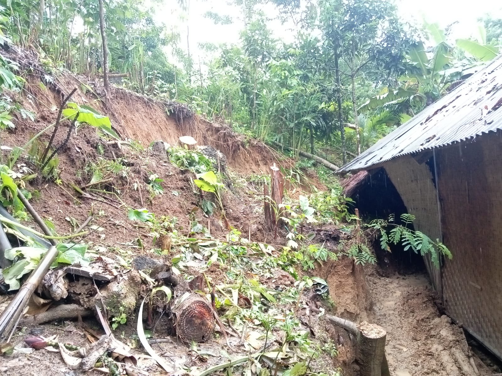 lanjut madamin kami sekeluarga bergegas menyelamatkan diri dan menyelamatkan sebagian perabotan rumah tangga namun sebagian sudah tertimbun oleh tanah, saya hawatir jikalau terus di guyur hujan deras maka tanah akan terus longsor dan kami tida mempunyai tempat tinggal lagi, mohon kepada pemerintah segera bantu kami yang sedang kena musibah ujarnya””