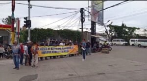 Global Rise TV (Serang)-Sejumlah masyarakat yang tergabung dalam Aliansi Masyarakat Peduli Kab. Serang menggelar aksi unjuk rasa di Jalan Pertigaan Cikande Asem, Kecamatan Cikande, Kabupaten Serang, Jumat 28 Maret 2025.