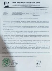 Suara para pencuci pasir tailing akhirnya menggema hingga ke gedung DPRD Provinsi Kepulauan Bangka Belitung. Melalui sebuah forum warga, mereka secara resmi melayangkan surat aspirasi kepada DPRD Babel, meminta perhatian serius atas nasib para pencari nafkah yang selama ini menggantungkan hidup dari aktivitas pencucian pasir tailing.