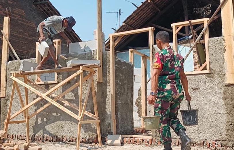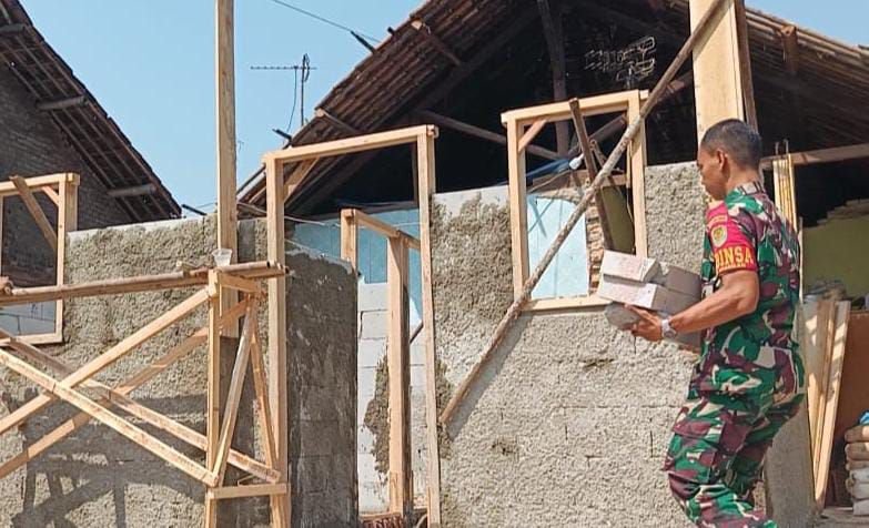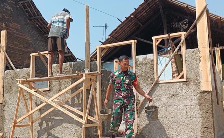 Babinsa Kodim 0602/Serang Sertu Ahdi Sutisna Bantu Percepat Program Perehaban Rumah Veteran