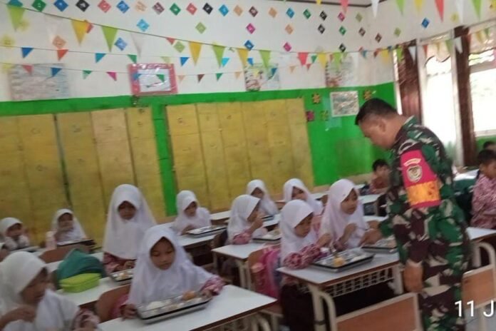 Global Rise TV (Kota Serang) – Bintara Pembina Desa (Babinsa) Kodim 0602/Serang terus berkomitmen, mendukung program pemerintah melalui pendampingan kegiatan Makan Bergizi Gratis (MBG) bagi anak-anak tingkat pelajar.