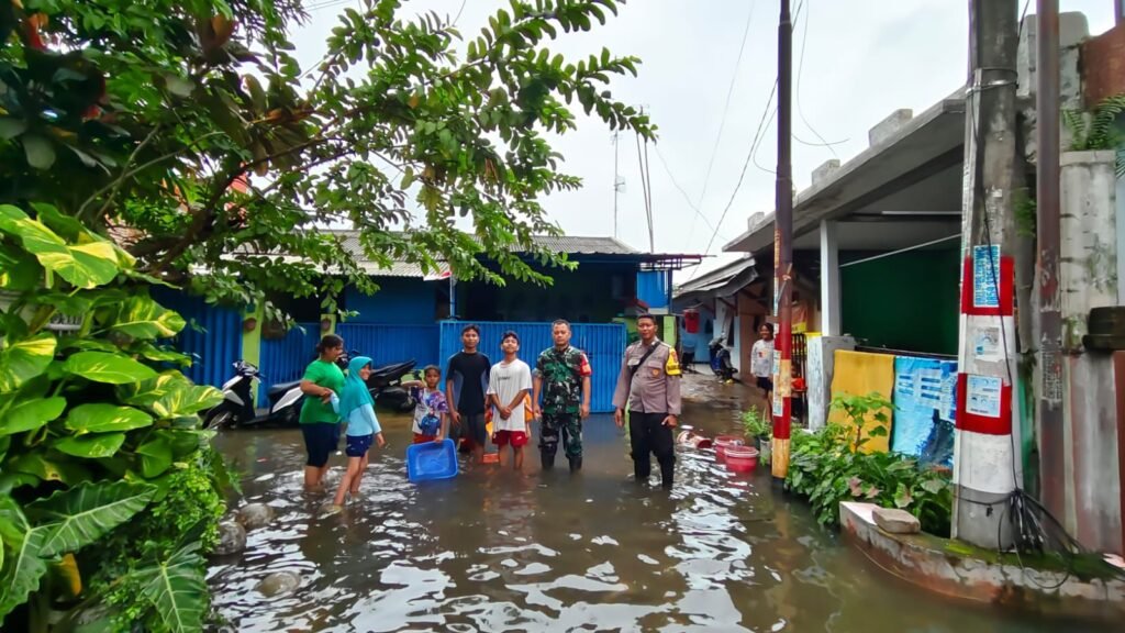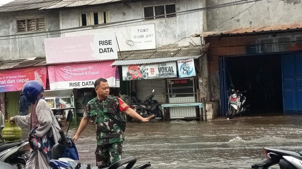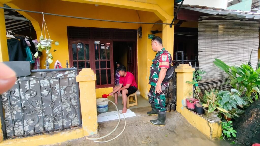 Global Rise TV (Kota Serang)-Babinsa Koramil 0602-01/Kota Serang, Serda Ahmad Husen, melakukan monitoring wilayah dan membantu warga terdampak banjir di Jalan Ayip Usman, Lingkungan Cilampang, RW.07, Kelurahan Unyur, Kecamatan Serang, Kota Serang, Provinsi Banten, Sabtu (09/01/2025).