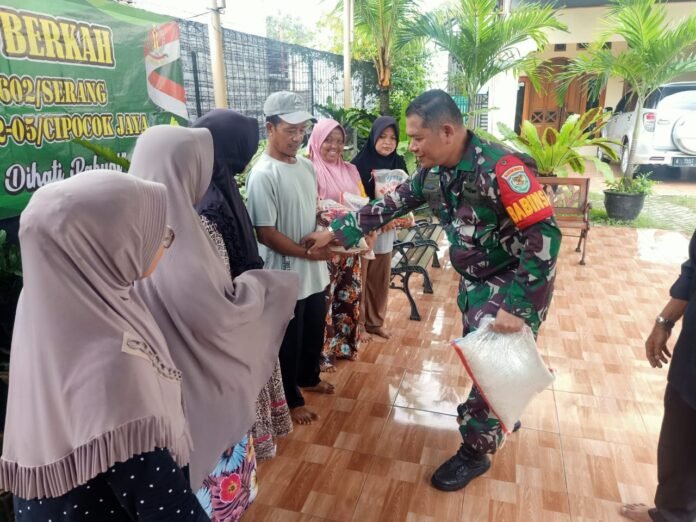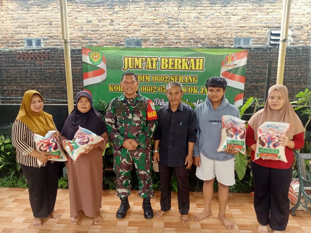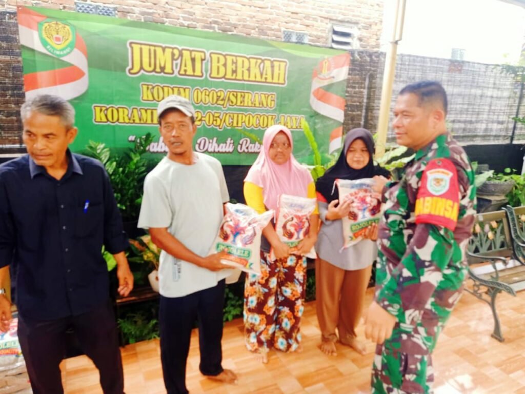 Kegiatan yang dimulai pada pukul 09.00 WIB ini melibatkan berbagai pihak, termasuk Babinsa Koramil 0602-05/ Cipocok Jaya Sertu Susilo, Ketua RT 01 Bapak Cecep, serta masyarakat setempat. Sebanyak 200 sak beras dengan berat masing-masing 5 kg diberikan kepada masyarakat kurang mampu, termasuk lansia dan anak yatim.