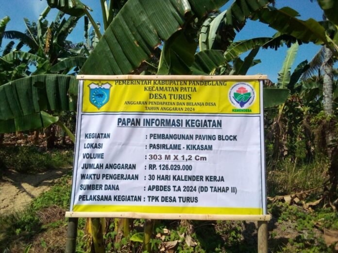 Global Rise TV (Pandeglang)-Pembangunan paving block yang bersumber dari dana desa tahap ll tahun 2024 dengan anggaran sebesar Rp.126.029.000 yang terletak di Pasirlame – Kikasam Desa Turus Kecamatan Patia Kabupaten Pandeglang Banten Diduga kuat dikerjakan asal jadi bahkan mengunakan material kurang bermutu, Sangat dikeluhkan oleh warga masyarakat.