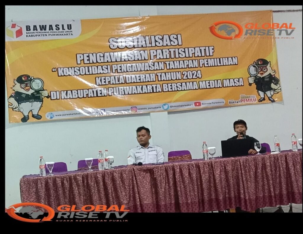 Global Rise TV (Purwakarta)-Badan Pengawas Pemilu (BAWASLU) Kab. Purwakarta hari ini Rabu (6/11/2024) menggelar acara Sosialisasi pengawasan Partisipatif terkait konsolidasi pengawasan Pemilukada tahun 2024 yang bertempat di Hotel Ciwareng In dengan mengundang Media Masa