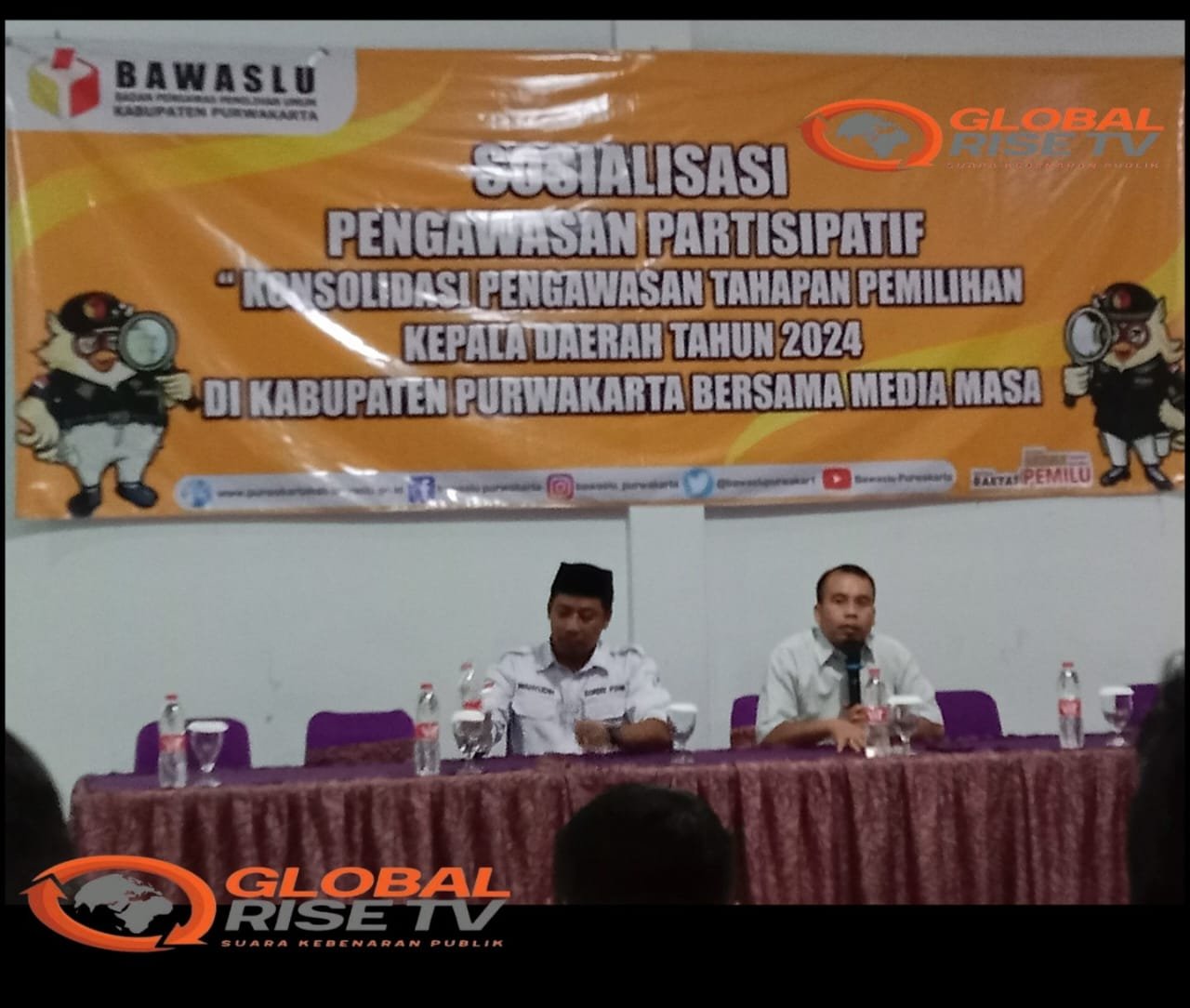 Global Rise TV (Purwakarta)-Badan Pengawas Pemilu (BAWASLU) Kab. Purwakarta hari ini Rabu (6/11/2024) menggelar acara Sosialisasi pengawasan Partisipatif terkait konsolidasi pengawasan Pemilukada tahun 2024 yang bertempat di Hotel Ciwareng In dengan mengundang Media Masa
