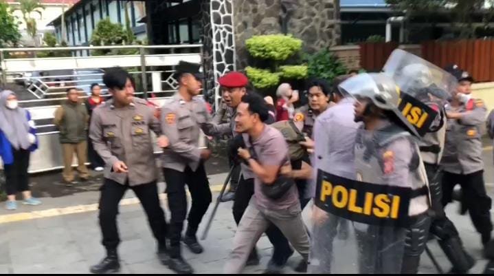 Kericuhan bermula ketika massa berhasil merobohkan pagar gedung DPRD dan mencoba menerobos barikade polisi. Selain berorasi, massa juga melemparkan air mineral dalam kemasan ke arah aparat, yang kemudian membalas dengan semprotan water cannon untuk membubarkan kerumunan.