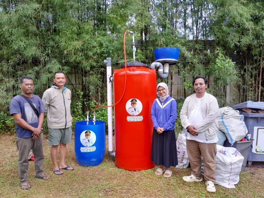 Dalam rangka membantu mengurangi timbunan sampah di Kota Tangerang Selatan khususnya sampah organik dari sumbernya, Gubernur Banten Andra Soni berikan bantuan toren Pupuk Organik Cair (POC) dan Biogas yang dapat mengolah sampah organik rumah tangga hingga 100 kg per hari dan menghasilkan biogas untuk memasak selama 30-60 menit/hari.