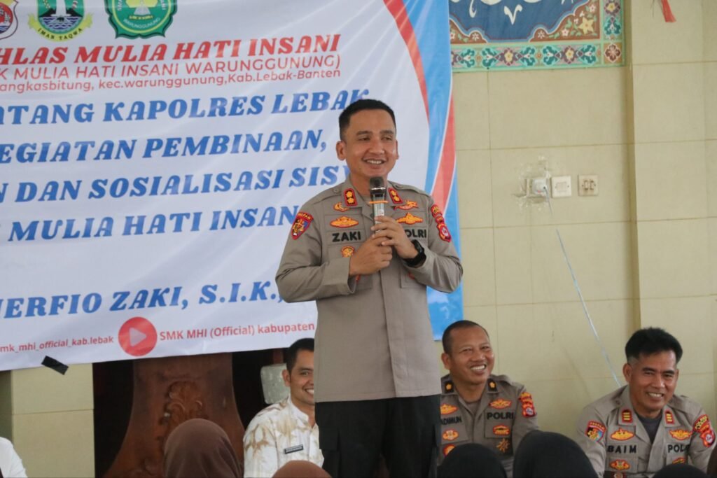Global Rise TV (Lebak) – Dalam upaya mencegah kenakalan remaja di kalangan pelajar, Kapolres Lebak Polda Banten AKBP Herfio Zaki, S.I.K., M.H. melaksanakan kegiatan sosialisasi di SMK Mulia Hati Insani Warunggunung yang berlokasi di Jl. Raya Rangkasbitung – Pandeglang Km. 07, Desa Warunggunung, Kecamatan Warunggunung, Kabupaten Lebak, pada Jumat (1/8/2025).