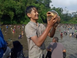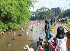 Bupati Kuningan Dr.H.Dian Rachmat Yanuar.M.Si Hadiri Pesta Rakyat Gobyag Ikan Situ Arja di Kelurahan Cirendang.