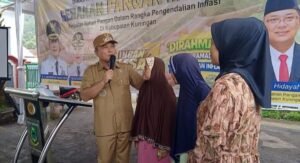 Gerakan Pangan Murah di Desa Haurkuning Kecamatan Nusaherang dihadiri Bupati Kuningan Dr.H.Dian Rachmat Yanuar.M.Si , Kepala Dinas Ketahanan Pangan dan Pertanian Kabupaten Kuningan Dr. Wahyu Hidayah. M. Si , Ketua Darma Wanita Kabupaten Kuningan , Kabag.Protokol , Camat Nusaherang ,Kepala Desa Haurkuning , Kapolsek , Danramil serta ratusan masyarakat Desa Haurkuning.