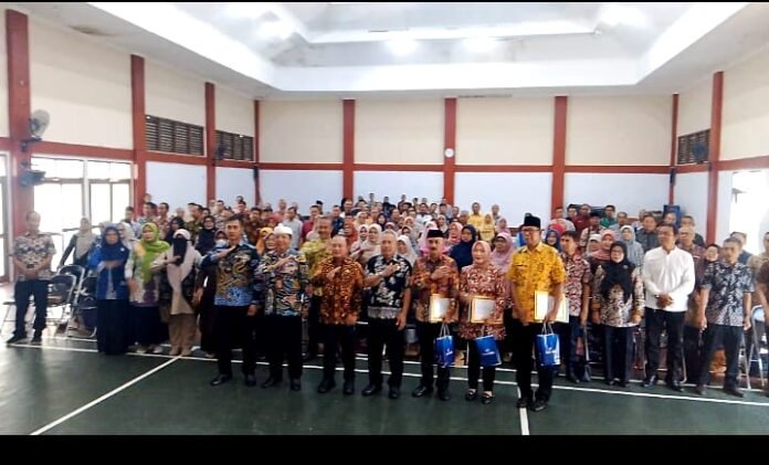 Sebanyak 126 Orang Pegawai Negeri Sipil yang mencapai Batas Usia pensiun TMT. 1 Oktober sampai dengan 1 Desember 2025 , pada hari ini Kamis Kamis 21 Agustus 2025 menerima SK Pemberhentian dan Pelepasan Calon Purna Bakti yang di serahkan Langsung Oleh Bupati Kuningan Dr.H.Dian Rachmat Yanuar .M.Si di Aula Graha BKPSDM Kabupaten Kuningan.