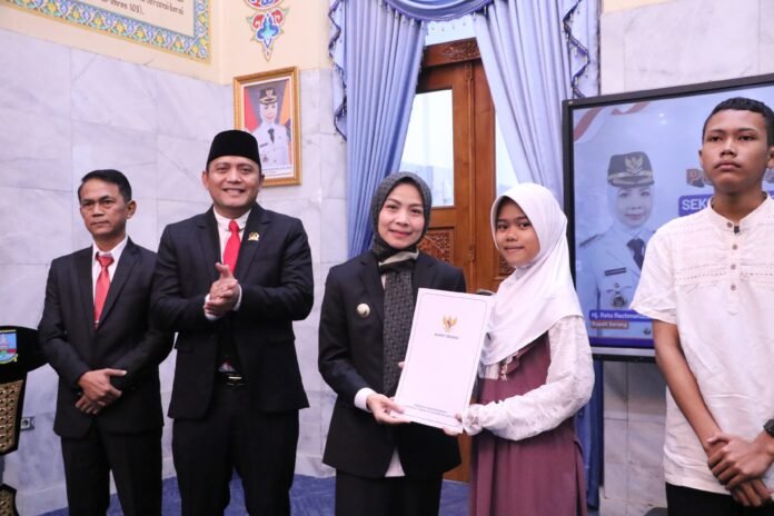 Global Rise TV (Serang)– Bupati Serang Ratu Rachmatuzakiyah melepas secara resmi keberangkatan 19 pelajar asal Kabupaten Serang yang akan melanjutkan ke Sekolah Rakyat Menengah Atas (SRMA) 33 Tangerang Selatan Tahun Ajaran 2025/2026 di Pendopo, Jumat 15 Agustus 2025.