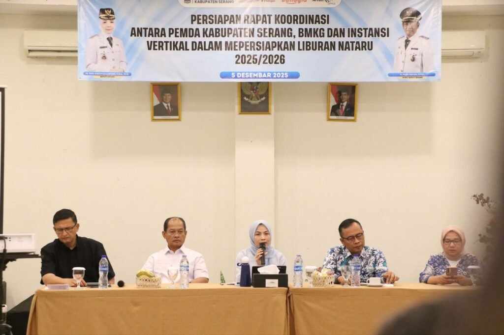 Hal ini disampaikan Ratu Zakiyah usai Rapat Koordinasi antara Pemda Kabupaten Serang, BMKG, dan Instansi Vertikal dalam Mempersiapkan Liburan Nataru 2025-2026 di Pesonan Krakatau Hotel dan Cottage Kecamatan Cinangka pada Jum’at, 5 Desember 2025.