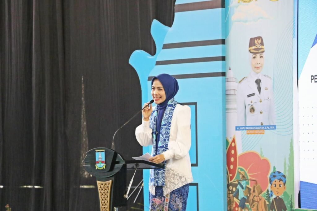 Global Rise TV,(Serang)–Bupati Serang Ratu Rachmatuzakiyah meminta Pengurus Dewan Kerajian Nasional Daerah atau Dekranasda Kabupaten Serang untuk terus melakukan upaya agar produk-produk lokal menjadi produk yang naik kelas. Permintaan disampaikan Bupati Ratu Zakiyah usai pelantikan Ketua dan Pengurus Dekranasda Kabupaten Serang.