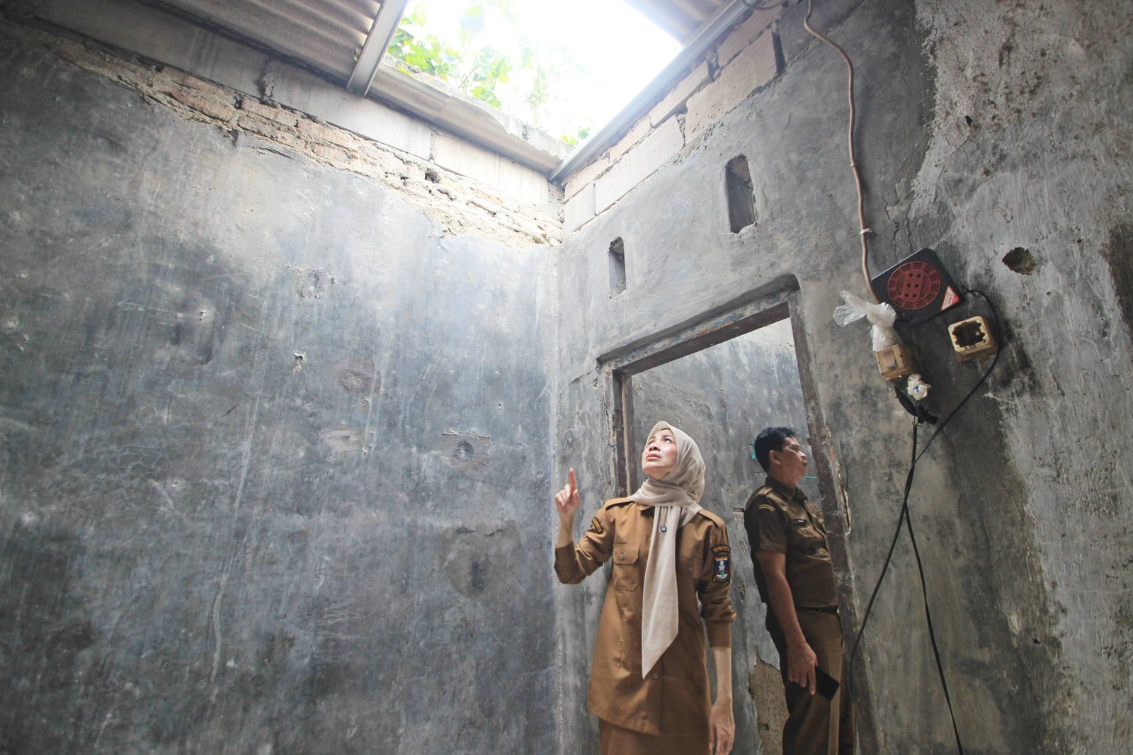 Tanpa diarahkan, Ratu Zakiyah langsung memasuki rumah warga dengan melepas terlebih dahulu sepatunya. Ratu Zakiyah mengecek beberapa ruangan yang mana atapnya mengalami jebol dan berlubang, dan selanjutnya membagikan sembako secara simbolis kepada warga.