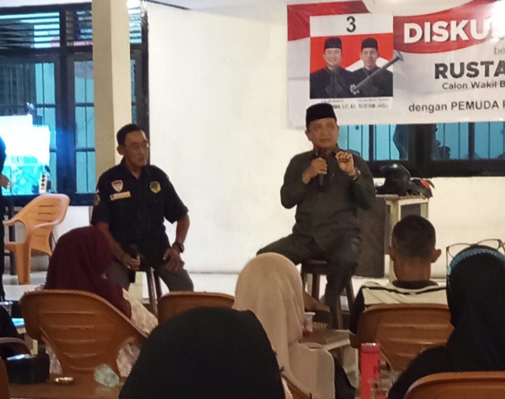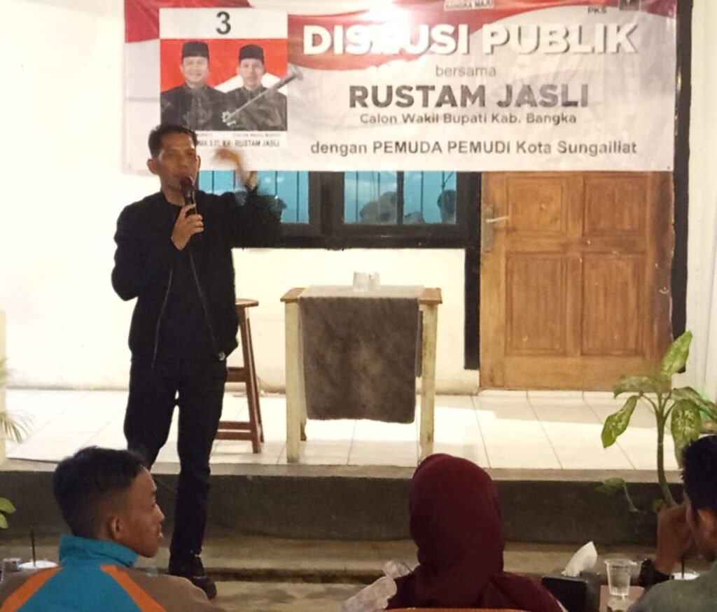Global Rise TV (Bangka Sungailiat)- Suasana warkop pemuda di Sungailiat Kabupaten Bangka, terasa Spesial pada Calon Wakil Bupati Bangka, Rustam Jasli, menggelar diskusi Publik dalam rangkaian kampanye Pilkada ulang, acara ini Menjadi sorotan, karena kehadiran sosok unik yang Membawa nuansa nostalgia era 90-an satria Baja hitam, Jum.at Malam Sabtu (15/08/2025)
