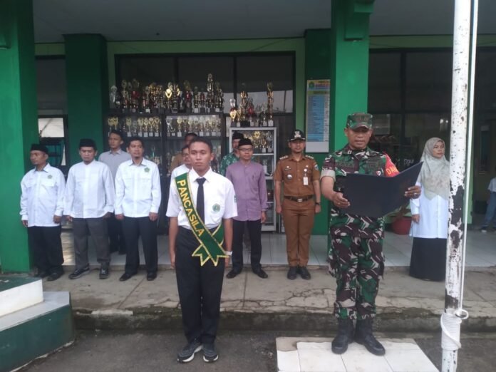 Global Rise TV (Pandeglang) -Dalam rangka menumbuhkan semangat nasionalisme dan kedisiplinan di kalangan pelajar, Danramil 0106/Menes Kodim 0601/Pandeglang Kapten Inf Tata berkesempatan menjadi Pembina Upacara Pengibaran Bendera Merah Putih di MA Pusat Menes, Kecamatan Menes, Kabupaten Pandeglang, Senin : 13 Oktober 2025.
