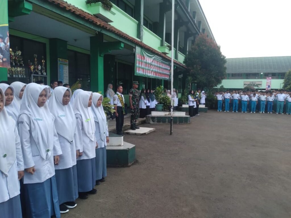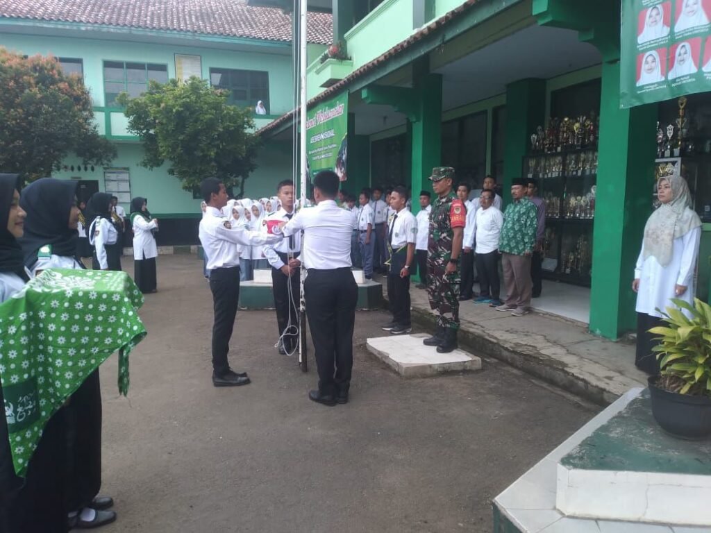 Sementara itu, Kepala Sekolah MA Pusat Menes Drs. M. Zain menyampaikan apresiasinya atas kehadiran Danramil Menes sebagai pembina upacara.