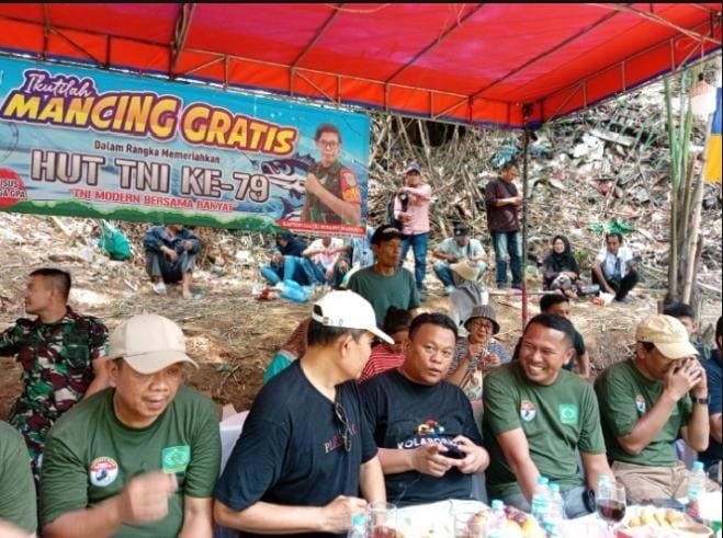 Global Rise TV (Serang)-Dalam rangka untuk memeriahkan HUT TNI ke-79, Kodim 0602/Serang, menggelar lomba mancing gratis dengan menebar sebnayak150 ekor ikan di sungai Cibanten. Acara itu bertempat di Konplek Gria Permata Asri, Kelurahan Dalung, Kecamatan Cipocok Jaya, Kota Serang, Banten, pada Sabtu (19/10/2024)