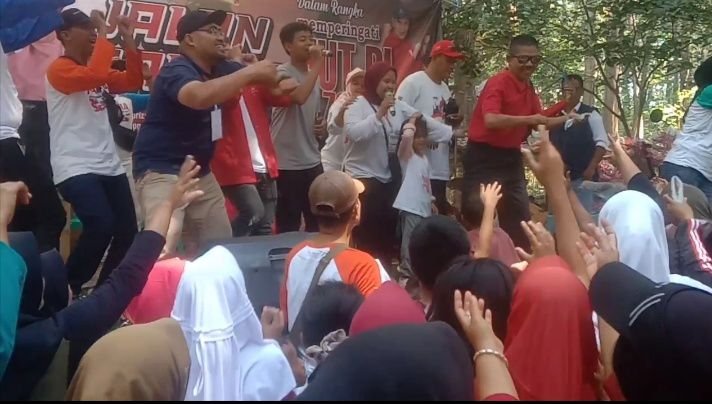Gerak jalan santai star dari As syuhada pinis di kebon kembang (perhutani) di mualai dari jam 07.30 masyarakat Desa Cikampek Timur sangat antusias