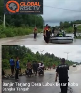 Global Rise TV (Lubuk Besar , Bangka Tengah) — Banjir besar kembali melanda Desa Lubuk Lingkuk, Kecamatan Lubuk Besar, Jumat (9/1/2026). Hujan deras yang mengguyur wilayah tersebut sejak dua hari ini hujan terus menerus menyebabkan air sungai melonjak naik tajam hingga meluap dan merendam permukiman warga serta memutus akses jalan desa lubuk Lingkuk Lubuk Besar.