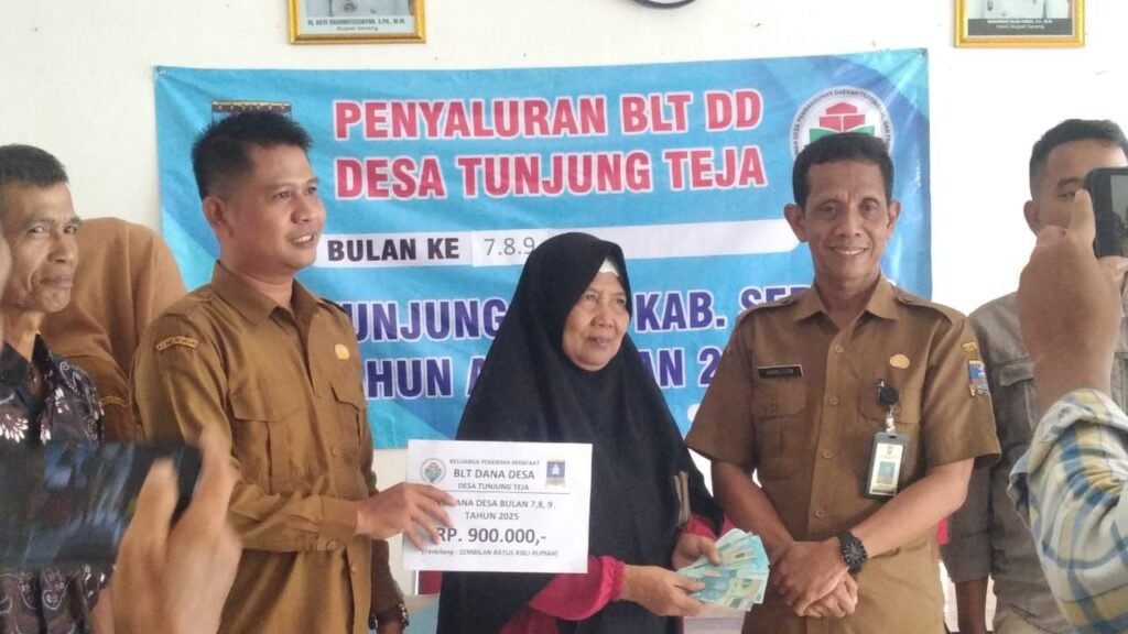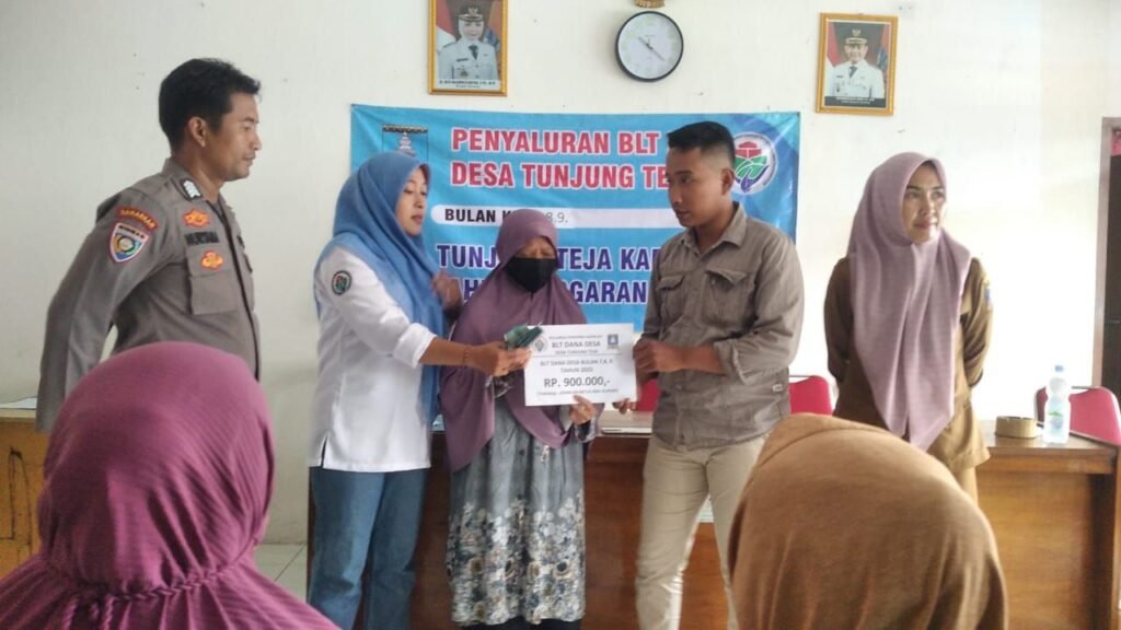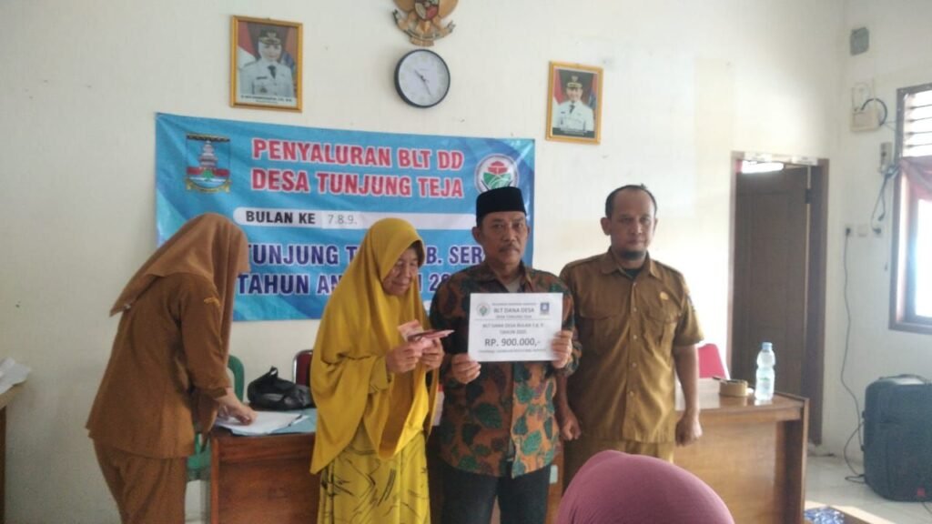 Penyaluran BLT DD untuk 22 KPM dan perkpm 900.000.(sebilan ratus ribu rupiah) penyaluran BLT DD di hadiri Carik Ahmad Muzani, ketua BPD. Staf. Babinktibmas. KPM. sekmat Tunjung Teja Nahril Ulum, Uci Sanusi dan jajarannya. Acara ini di aula Desa Tunjung Teja Kecamatan Tunjung Teja Kabupaten Serang. 23/9/2025