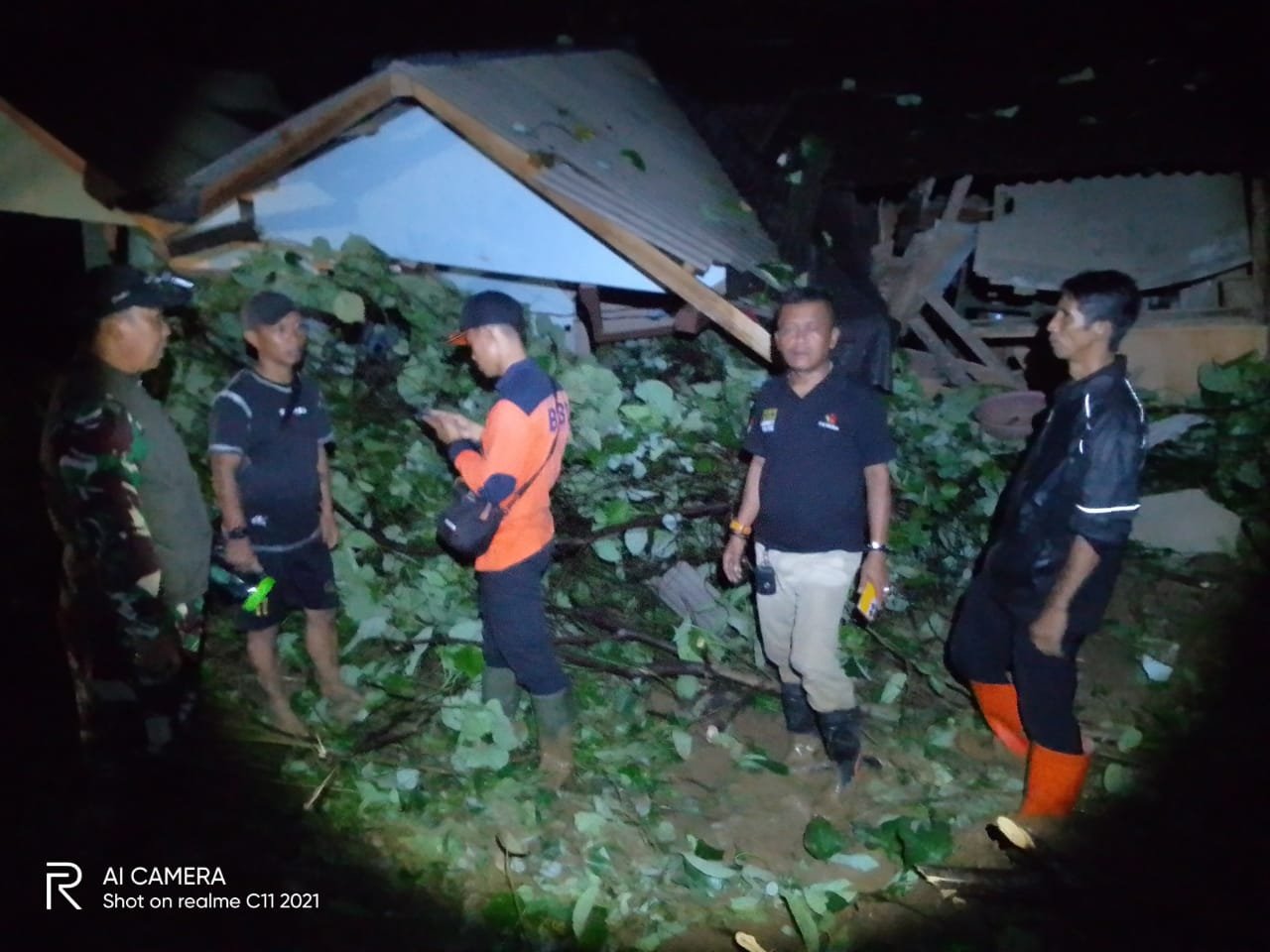Di tengah kondisi hujan yang deras, longsoran tanah tersebut menimbun bagian depan rumah warga. Terlihat betapa beratnya dampak yang ditimbulkan, di mana rumah-rumah yang terdampak tak dapat ditempati dan akses jalan desa terputus total akibat material longsor yang menutupi ruas jalan.