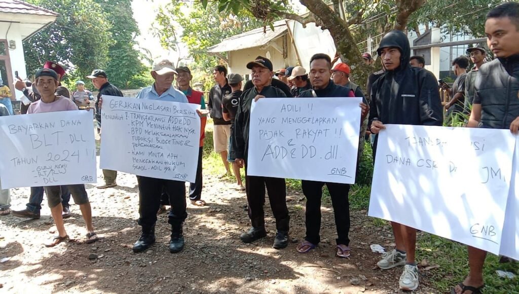Global Rise TV (Sukabumi) - Diduga ada indikasi melakukan penyelewengan anggaran warga Desa Neglasari melakukan aksi demontrasi di depan kantor Desa Neglasari, Kecamatan Lengkong, Kabupaten Sukabumi menuntut Kepala Desa (Kades) Neglasari Rahmat Hidayat untuk mundur dari jabatannya.
