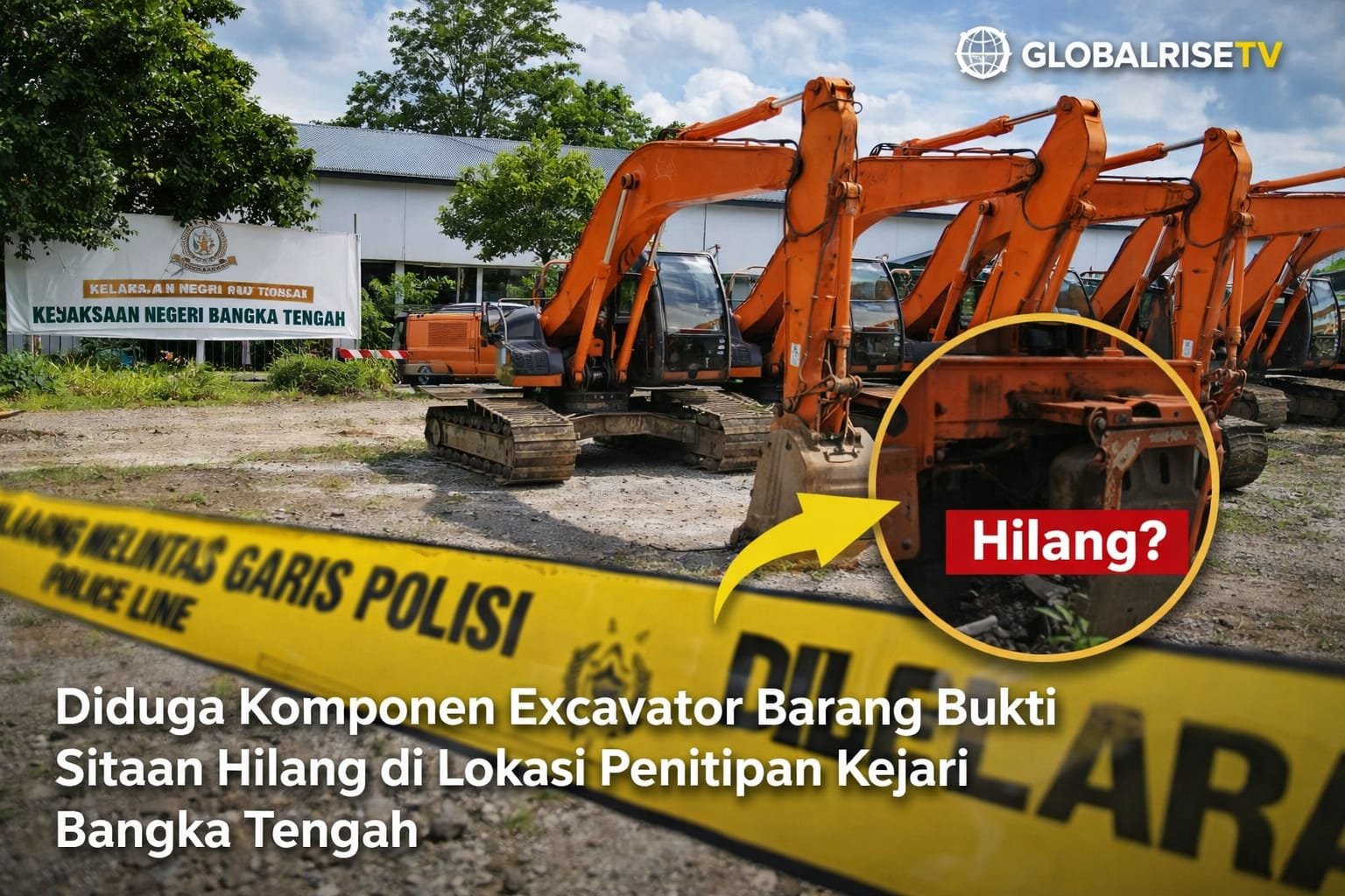 Global Rise TV (Bangka Tengah)— Rabu, (15/04/2026). Dugaan hilangnya komponen alat berat excavator dari barang bukti sitaan Satgas PKH di lokasi penitipan milik Kejaksaan Negeri Bangka Tengah memicu perhatian luas masyarakat. Peristiwa ini menjadi sorotan karena menyangkut keamanan aset sitaan negara yang seharusnya berada dalam pengawasan ketat hingga proses hukum selesai.