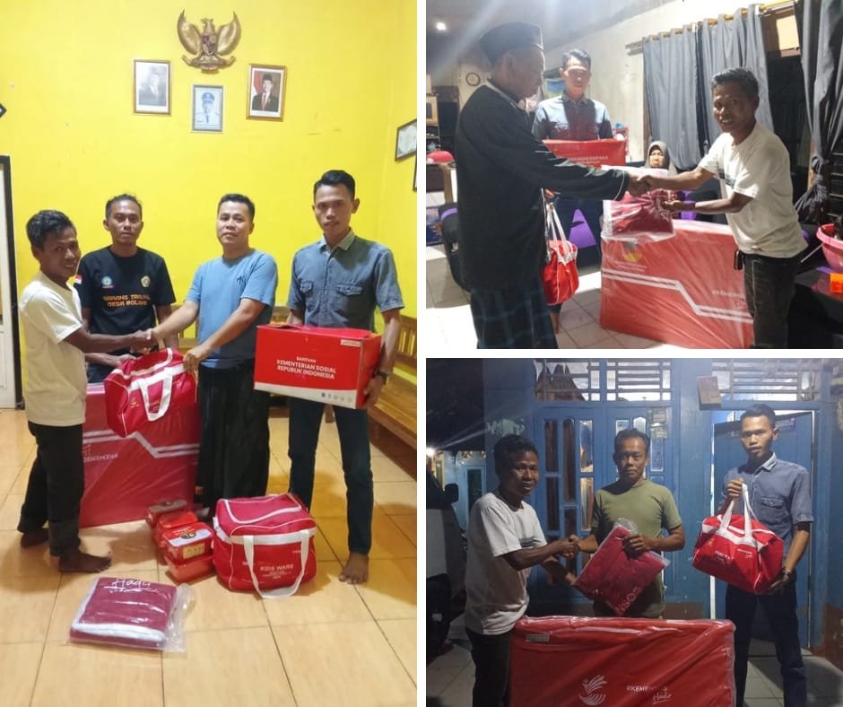 - Abah Rusdi, warga Desa Bolang, juga korban rumah tertimpa pohon kelapa. Abah Rusdi menerima paket makan siap saji, perlengkapan rumah tangga, kasur lantai, dan selimut.