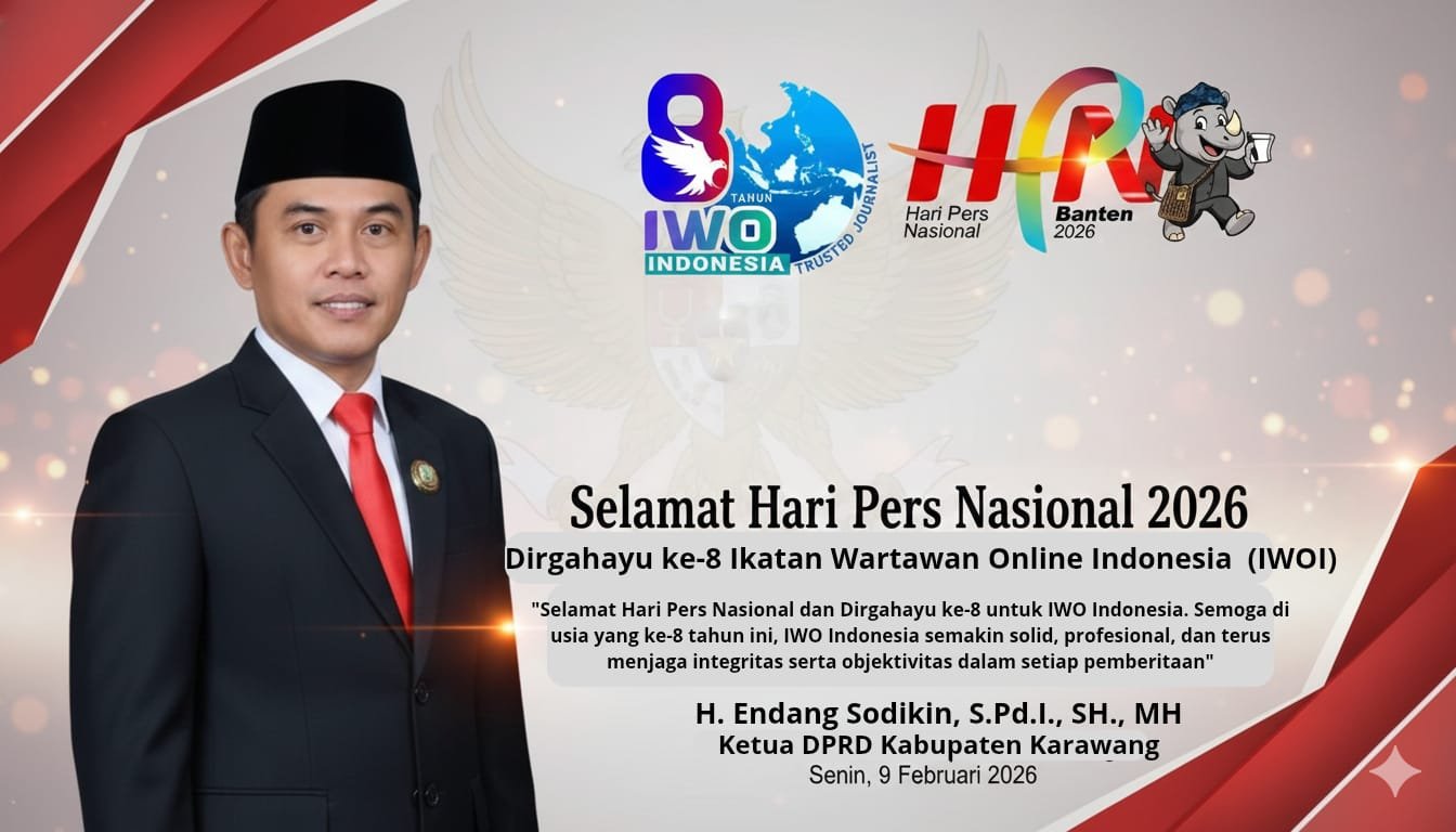 Global Rise TV ( Karawang) -DPRD Kabupaten Karawang menyampaikan ucapan selamat Hari Pers Nasional (HPN) serta Dirgahayu ke-8 kepada Ikatan Wartawan Online Indonesia (IWO Indonesia) pada Senin, 9 Februari 2026.