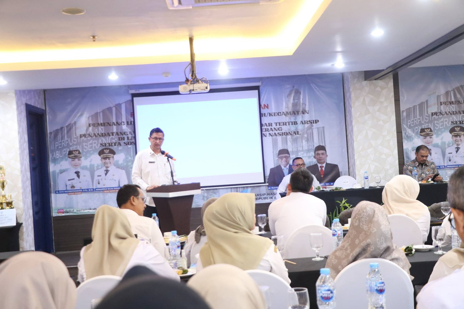Turut hadir Direktur Informasi Kearsipan Arsip Nasional Republik Indonesia (ANRI), Rudi Anton, Kepala DPKD Provinsi Banten, Usman Asshiddiqi Qohara sejumlah kepala OPD, dan para camat se Kabupaten Serang.