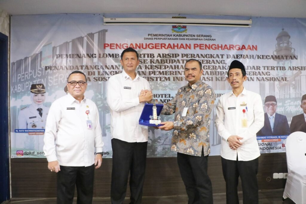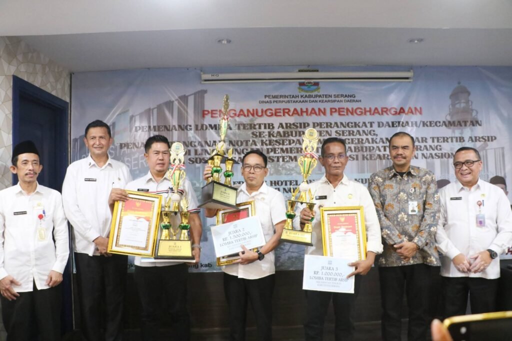 Global Rise TV (Serang)–Dinas Perpustakaan dan Kearsipan Daerah (DPKD) Kabupaten Serang menggelar Penganugerahan Penghargaan Pemenang lomba tertib Arsip Perangkat Daerah/Kecamatan se Kabupaten Serang Tahun 2025. Hasilnya, Dinas Tenaga Kerja dan Transmigrasi (Disnakertrans) dan Kecamatan Kibin meraih Juara 1 untuk tingkat perangkat daerah dan kecamatan.