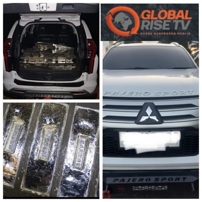 ● 1 unit Pajero Sport putih Plat 2427 KBR bermuatan 220 batang timah balok