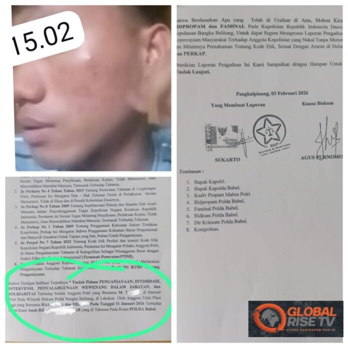 Dugaan penganiayaan terhadap seorang tahanan anak mengguncang internal Polda Bangka Belitung. Seorang ayah, Skt, resmi melaporkan dua oknum polisi berinisial Rj dan Er atas dugaan pelanggaran etik dan tindak penganiayaan terhadap anaknya Bil , yang ditahan di Rutan Tahti Polda Babel.