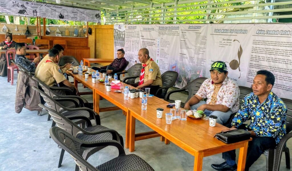 Kunjungan dengan diakhiri Ngopi Bersama, dan meninjau serta Fotho, bersama di depan kedai pandu perlengkapan atribut pramuka,