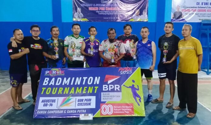 Global Rise TV (Pandeglang)-14 Agustus 2025 – Bertempat di GOR PGRI Kecamatan Cikeusik, Kabupaten Pandeglang, Provinsi Banten, digelar pertandingan final badminton ganda putra dalam rangka Pesta Rakyat Cikeusik memperingati HUT ke-80 Republik Indonesia.