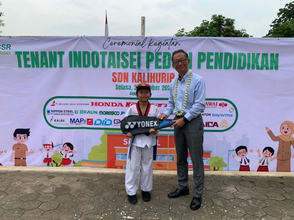 “Kami berharap anak-anak semua gembira dan dapat memanfaatkan bantuan ini dengan sebaik-baiknya. Rajin belajar, semangat berolahraga, dan terus berusaha meraih cita-cita yang tinggi,” ujar Mr. Makiuchi, Presiden Direktur sebagai perwakilan Forum CSR Tenant Indotaisei.