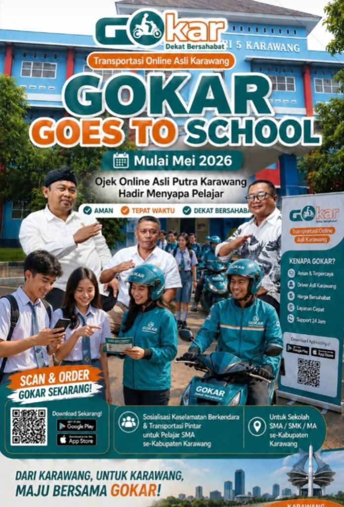 Global Rise TV (KARAWANG)– Berawal dari gagasan putra daerah untuk menghadirkan layanan transportasi digital yang dekat dengan kebutuhan masyarakat, GOKAR tumbuh sebagai platform transportasi online asli Karawang yang membawa semangat pelayanan aman, cepat, dan bersahabat. Kini, dalam upaya memperluas manfaat sosial sekaligus membangun sinergi dengan dunia pendidikan, Founder GOKAR Syuhada Wisastra, melakukan silaturahmi bersama jajaran Musyawarah Kerja Kepala Sekolah (MKKS) SMAN se-Kabupaten Karawang, Rabu (29/4/2026).