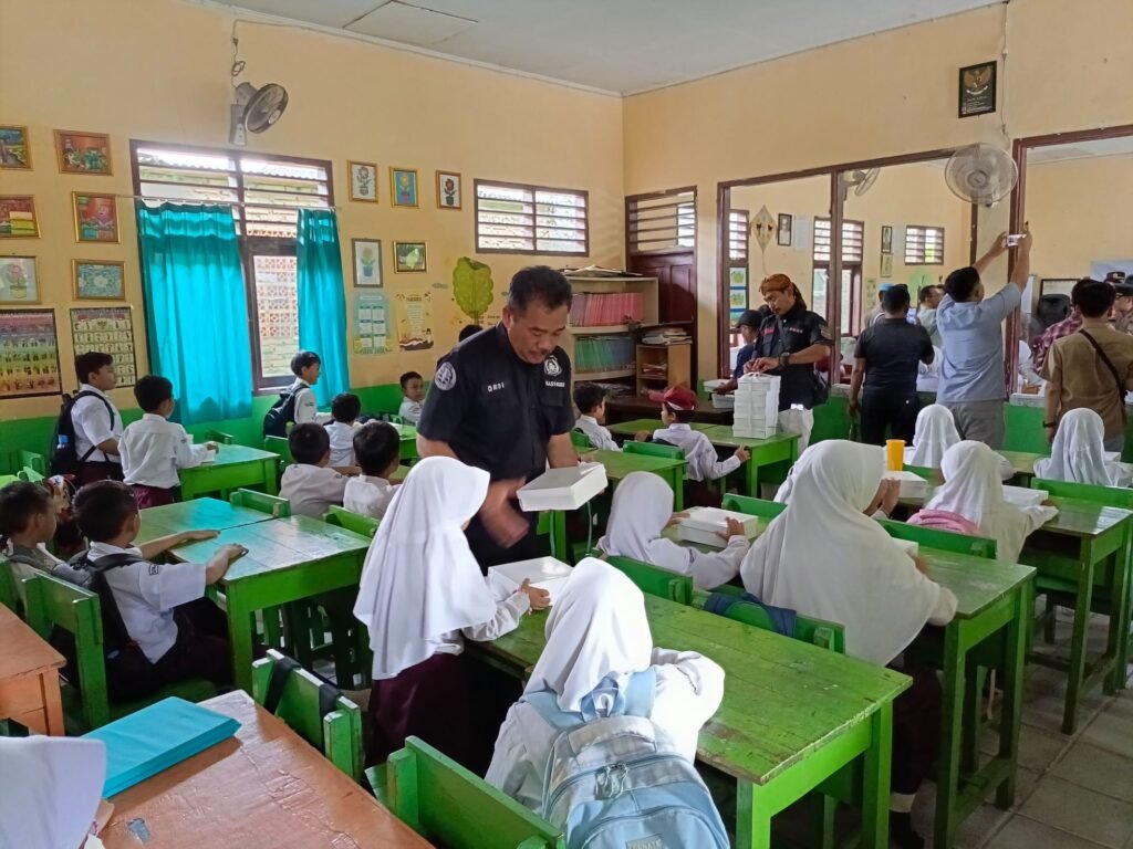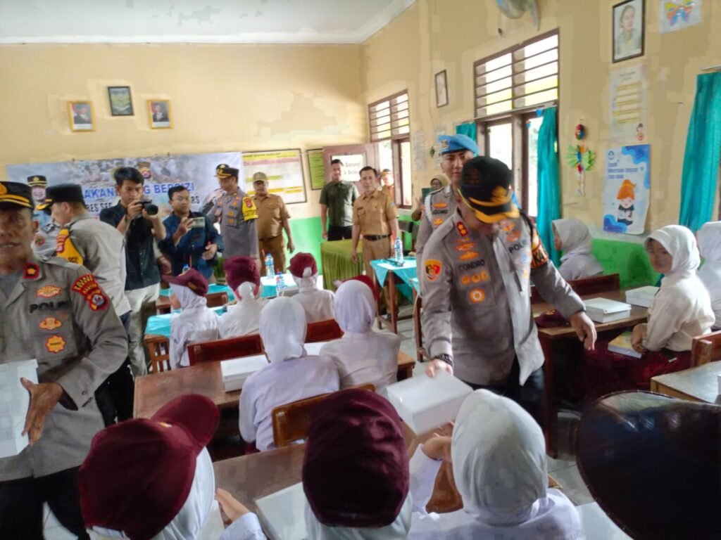 Untuk diketahui, Kapolres Serang membagikan makan gratis sehat kepada ratusan siswa/i SDN Taman Ciruas Permai, dengan menu, ayam, telor, sayur dan susu kotak.