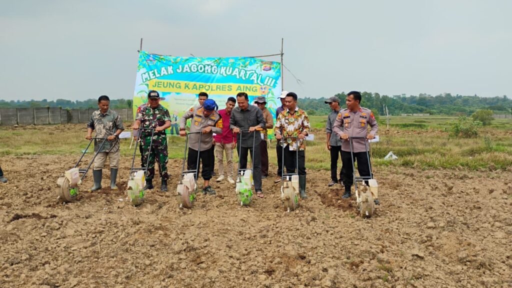Global Rise TV (SERANG)–  Kapolres Serang AKBP Condro Sasongko bersama Muspika Kecamatan Kopo serta Kelompok Tani mengadakan penanaman jagung Kuartal III Program Swasembada Pangan di lahan seluas 14 di Desa Cidahu dan Ranca Sumur, Kecamatan Kopo, Kabupaten Serang, Kamis (31/7/2025).