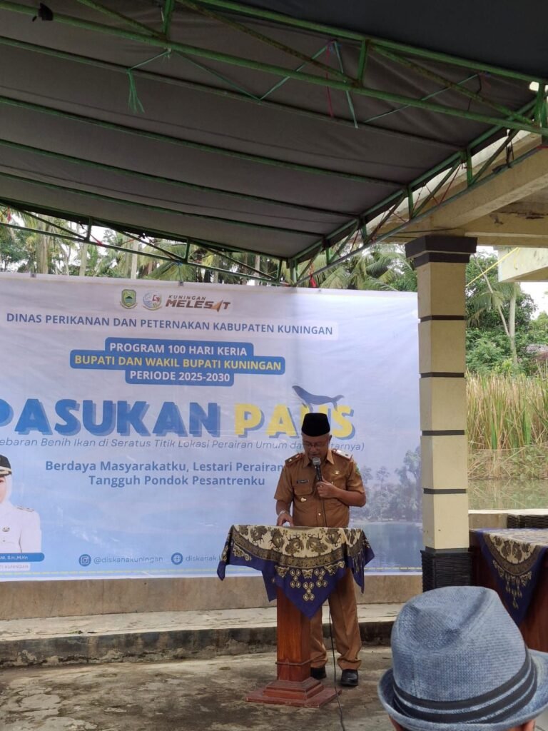 Program Dinas Perikanan dan peternakan Kabupaten Kuningan mengelar Gebyar Pasukan Paus ( Penebaran Benih ikan di seratus titik lokasi perairan umum dan sekitarnya )pada hari ini Selasa 11 Maret 2025 dilaksanakan Penebaran Benih ikan di Setu Balong Dayeh oleh Pj. Sekda Kuningan Beni Prihayatno ,S.Sos M.Si mewakili Bupati Kuningan. Dr.H.Dian Rachmat Yanuar .M.SI.