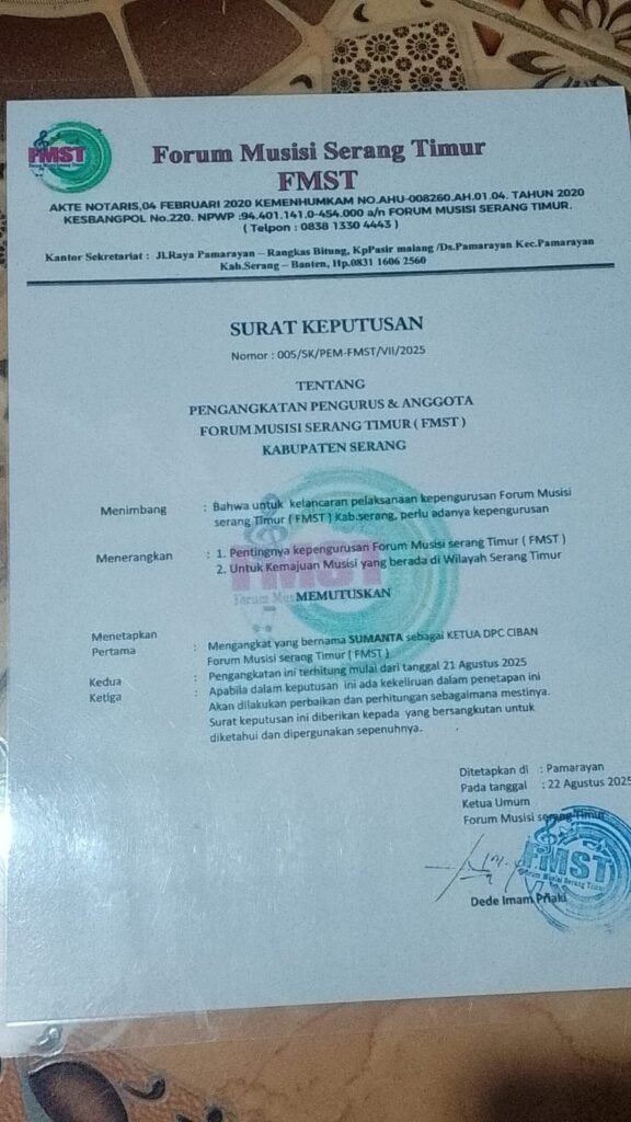 Ketua Dpc sumanta sa at di kompirmasi awak media Globalrisetv menyampaikan, banyak terimakasi kepada pengurus forum musisi serang timur, atas kepercayan nya, pungkasnya