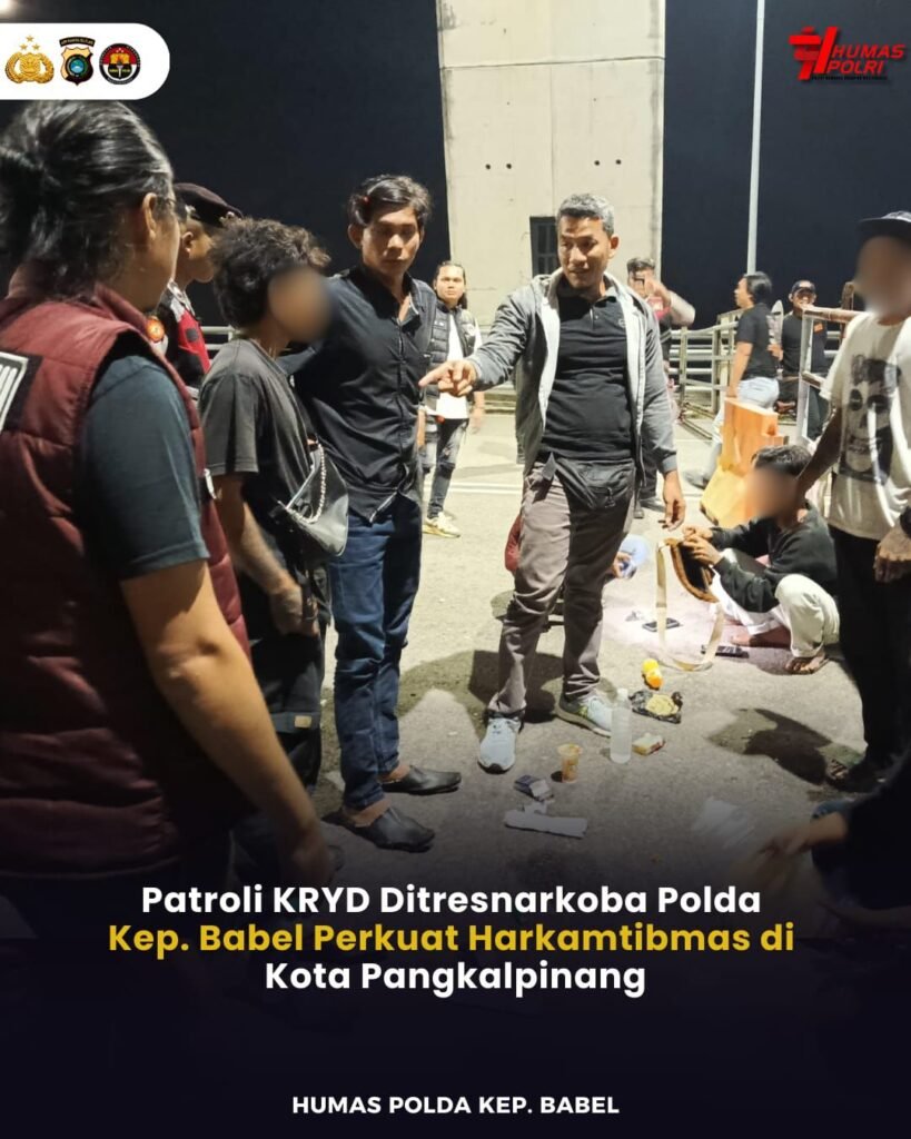 Global Rise TV (Bangka) -Direktorat Resnarkoba Polda Bangka Belitung, menggelar patroli kegiatan patroli, yang Ditingkatkan (KRYD) di, sejumlah, titik lokasi yang Menjadi tempat, tongkrongan Masyarakat di Kota Pangkalpinang, Sabtu (07/02/2026) malam.