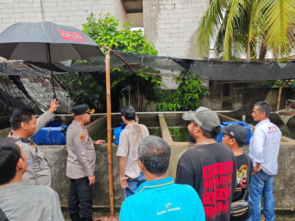 Global Rise TV (SERANG)-Kapolres Serang AKBP Condro Sasongko menggelar kegiatan Ngariung Iman Ngariung Aman dengan memberikan 15 ribu benih ikan lele berikut 2 kwintal pakan ikan kepada Yusuf, salah seorang pemilik kolam ikan di Kampung Kadeper, Desa Pamanuk, Kecamatan Carenang, Kabupaten Serang, Kamis (26/12/2024).