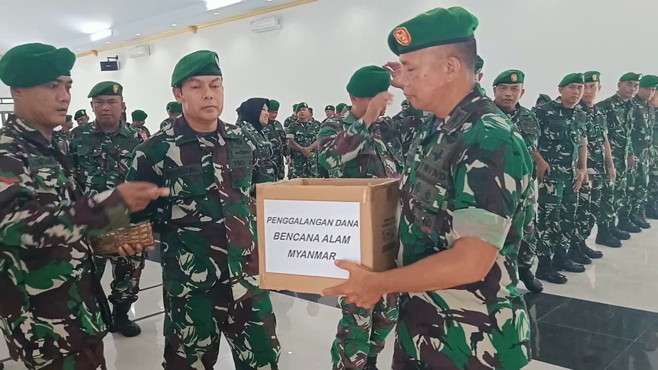 Global Rise TV (SERANG) -Anggota Kodim 0602/Serang menggelar aksi donasi untuk membantu warga yang menjadi korban bencana gempa di Myanmar. Donasi tersebut dilakukan pada Selasa (1/4) sebagai bentuk kepedulian terhadap saudara-saudara yang terdampak gempa berkekuatan 7,7 skala Richter yang terjadi pada 29 Maret 2025 lalu.
