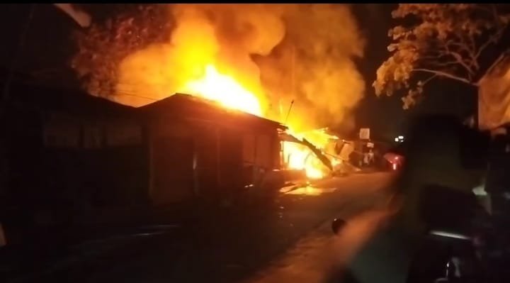 Global Rise TV (Serang)-Gerak cepat petugas pemadam kebakaran dan personil Polsek Cikande berhasil memadamkan kobaran api yang melumat 6 kios semi permanen di lingkungan Kampung Maja, Desa Kibin, Kecamatan Kibin, Kabupaten Serang, ludes terbakar pada Minggu, 30 Nopember 2025 malam.