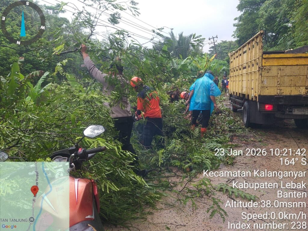 Gerak Cepat,Personil Polsek Rangkasbitung Polres Lebak Evakuasi Pohon Tumbang yang Menutup Ruas Jalan