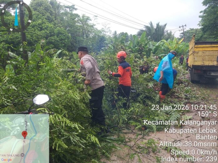 Gerak Cepat,Personil Polsek Rangkasbitung Polres Lebak Evakuasi Pohon Tumbang yang Menutup Ruas Jalan